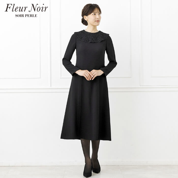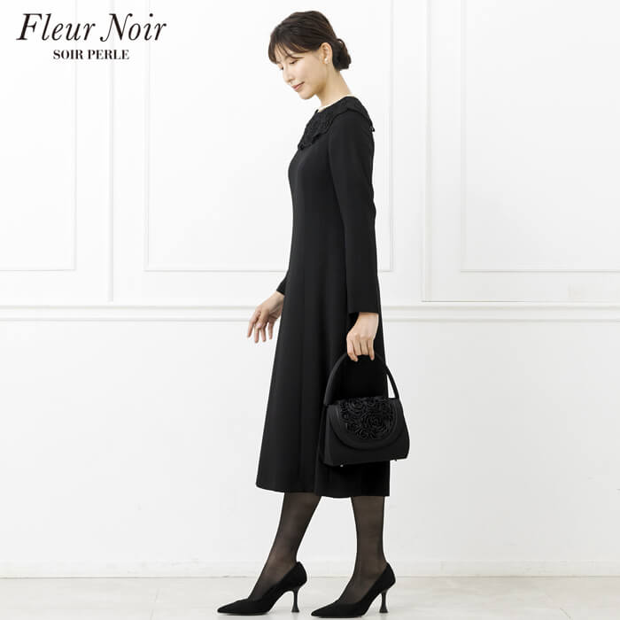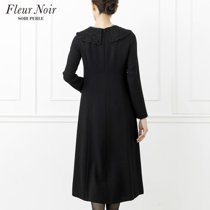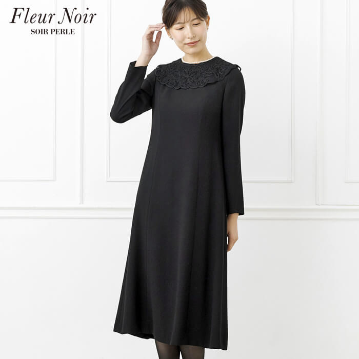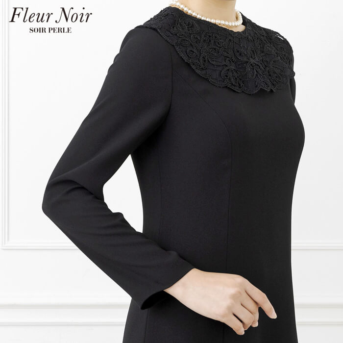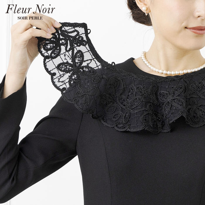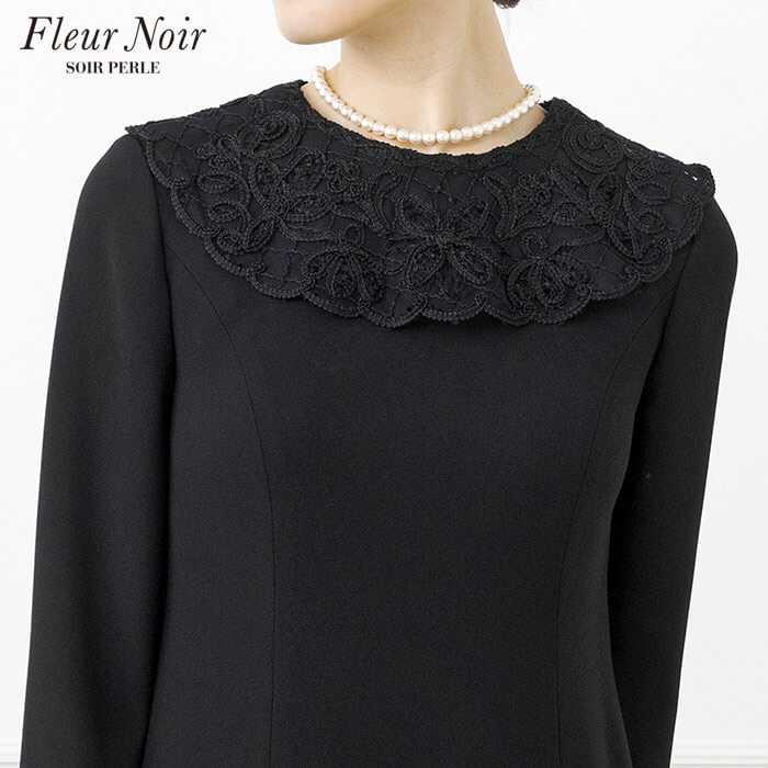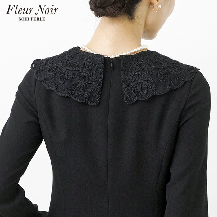 フェミニンかつ繊細でエレガントな「Fleur Noir SOIR PERLE」。 取り外せるレースのモチーフ襟がポイントのフェミニンなワンピース。