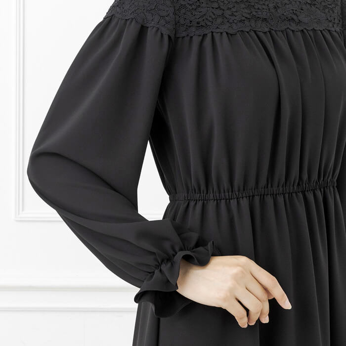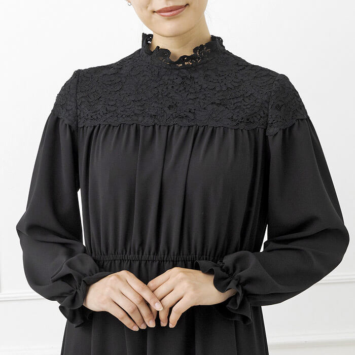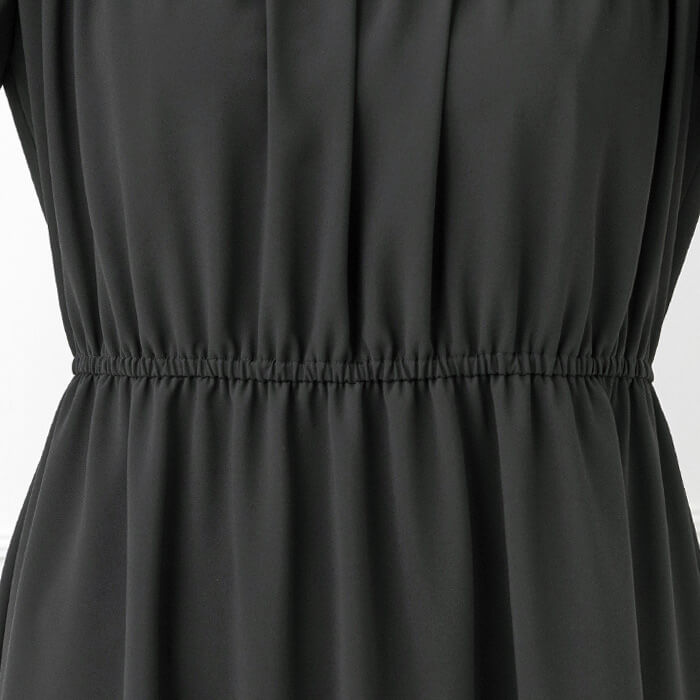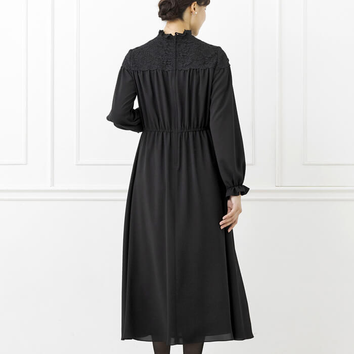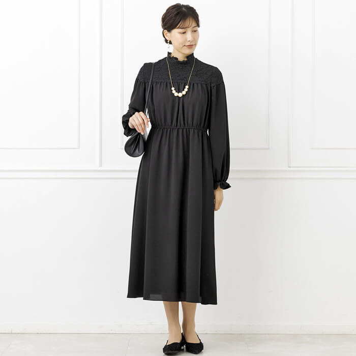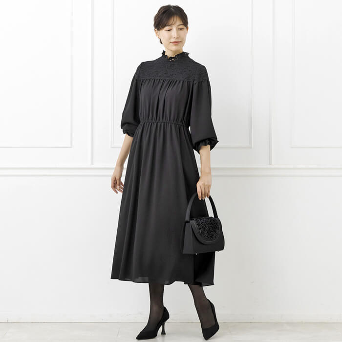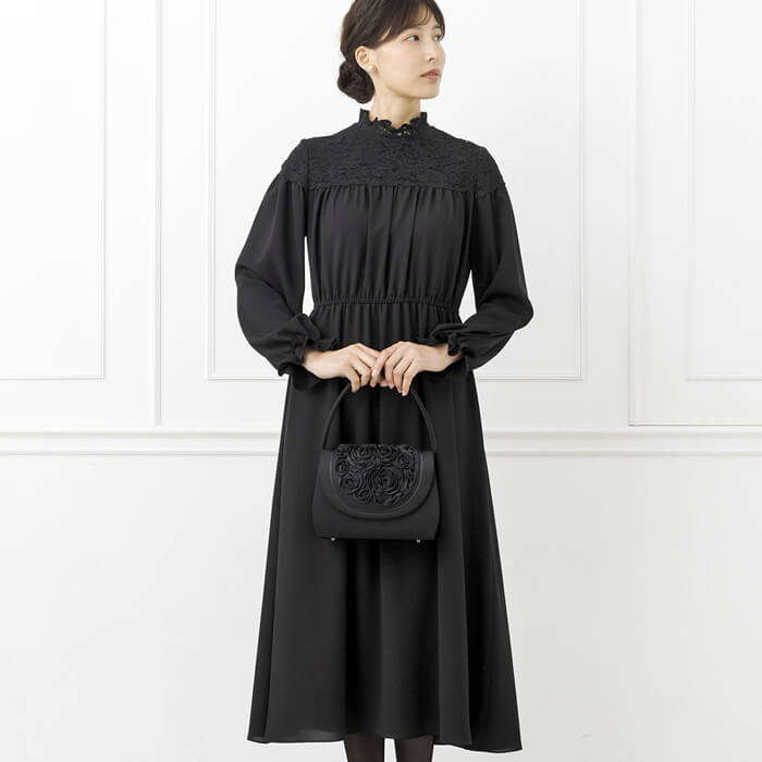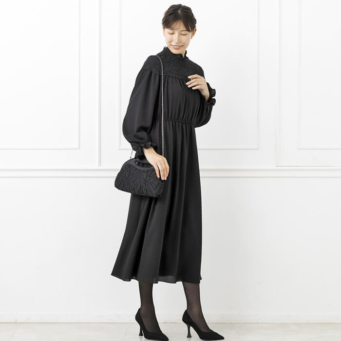 家族葬やお別れの会、入学式や卒業式、七五三などの式典に幅広く着用できるブラックドレス。