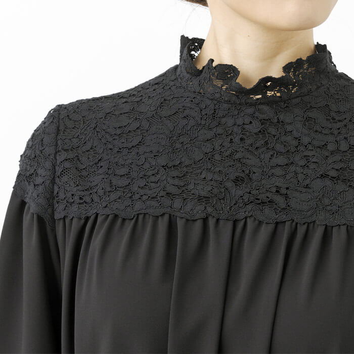 ■レース×ギャザー贅沢な分量感のギャザーとレースの組み合わせがフェミニンな装いです。