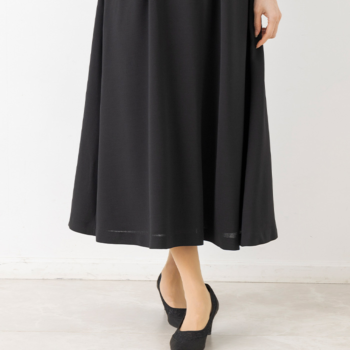 ふんわりとしたシルエットですが、ウエストの後ろ部分はフィット感のあるゴム仕様にし、メリハリのあるデザインに仕上げました。