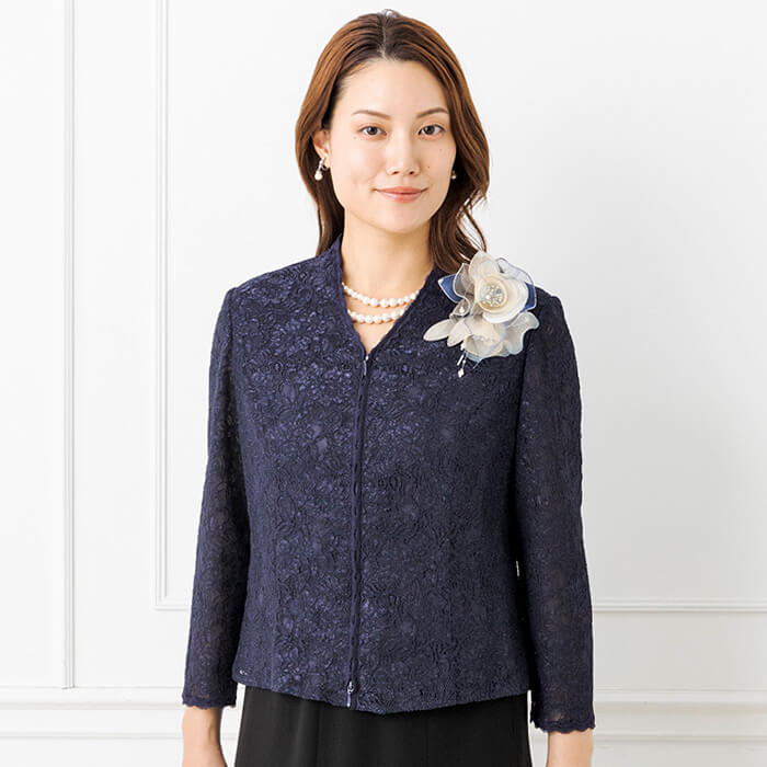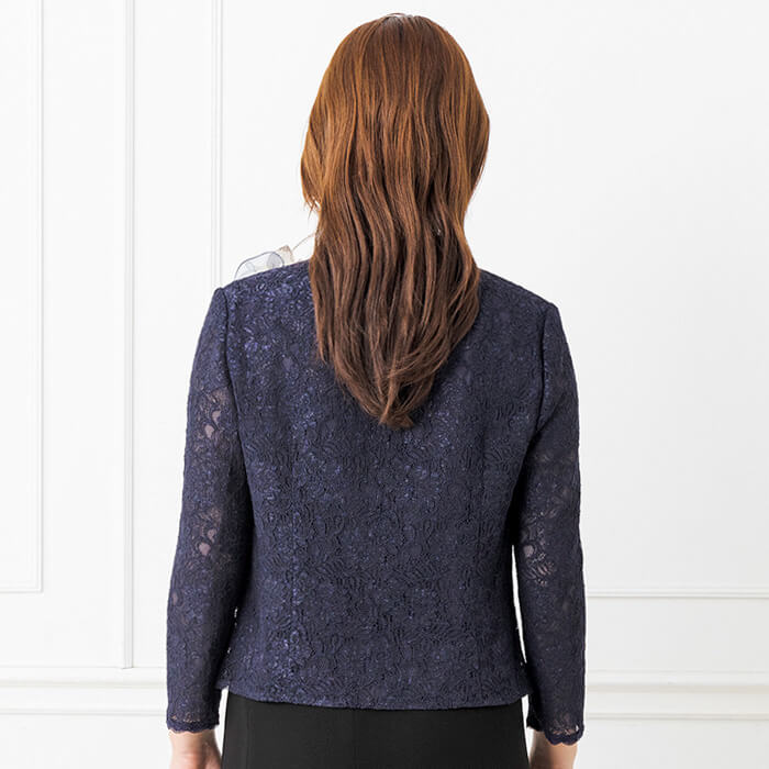 - ジャケット 表地:レーヨン70% ナイロン25% ポリエステル5%(ラメレース)裏地:ポリエステル100%
