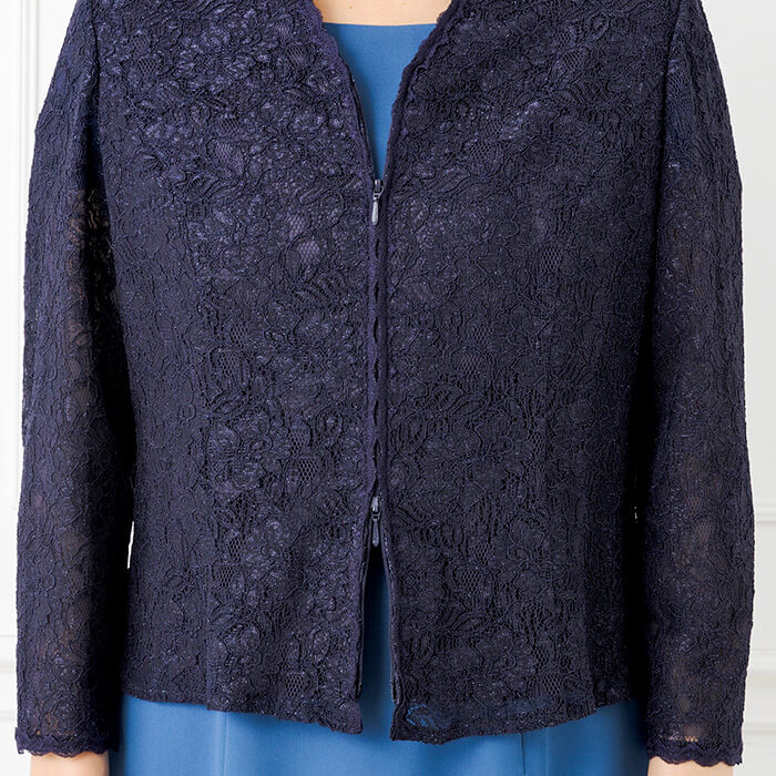 羽織にもなる、ラメレースのファスナー付きブラウス