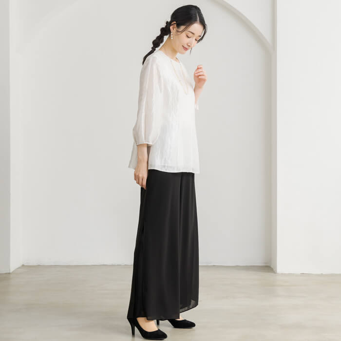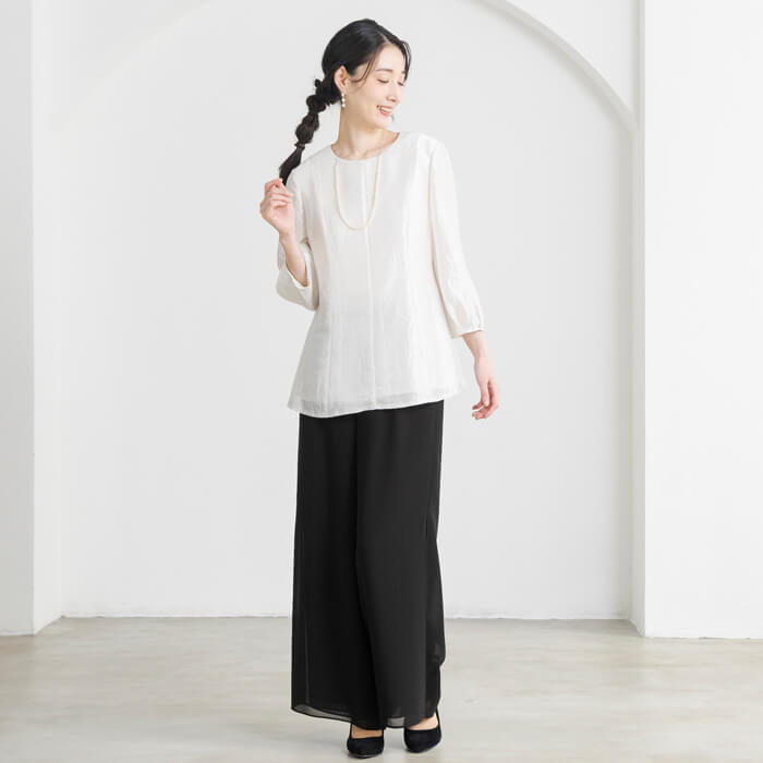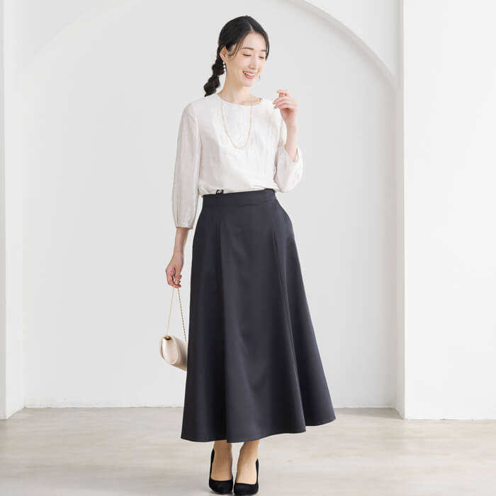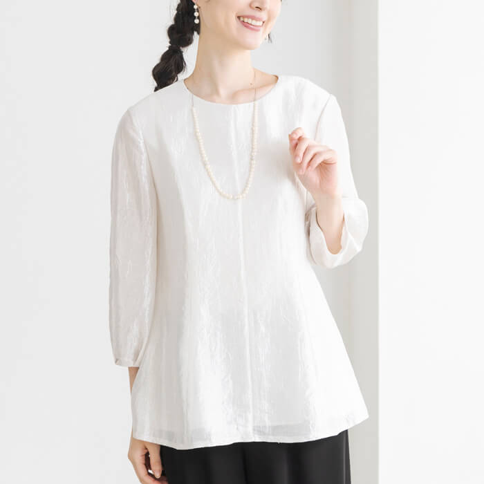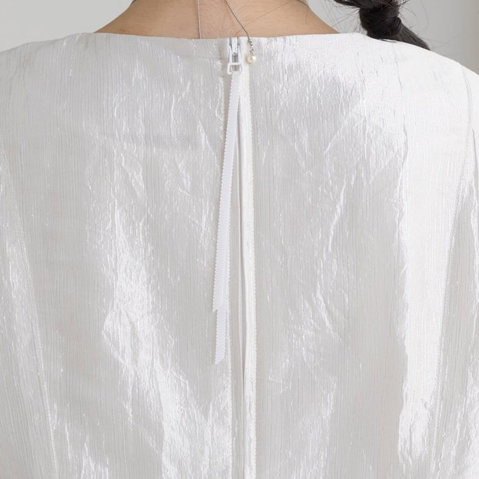 ハリ感と軽さが特徴の「カールマイヤー」という生地を使用した洗えるブラウス。 構築的なパフスリーブ、縦の切り替え、長めのペプラムが、大人エレガンスな印象です。 ファスナーにはスライダーリボンがついて着替えも簡単。 ロングスカートやワイドパンツとの相性も良く、ボトムにインでもアウトでもスタイルが決まります。 こちらはご自宅で洗えるウォッシャブル。