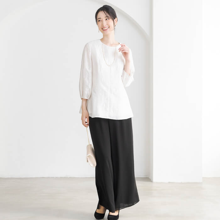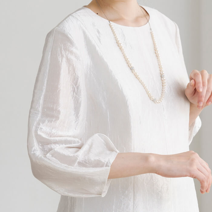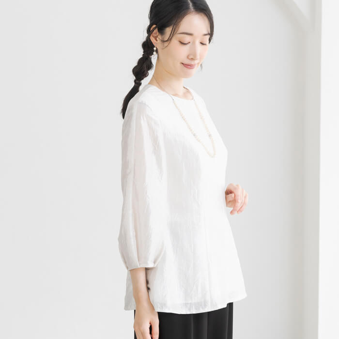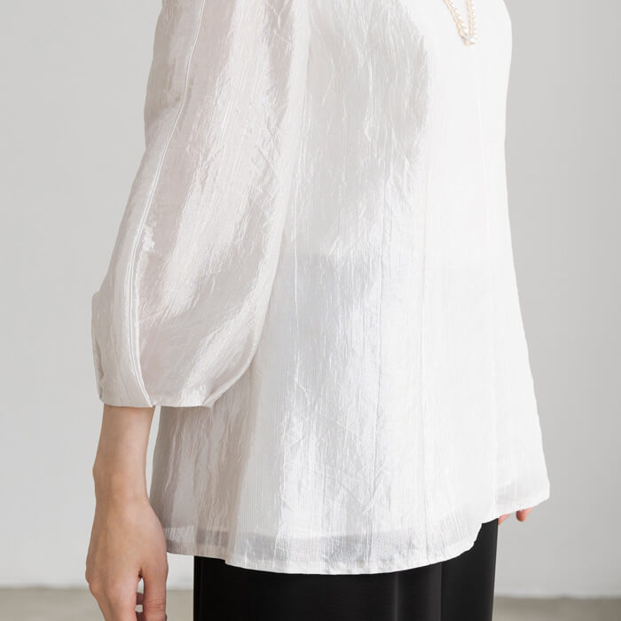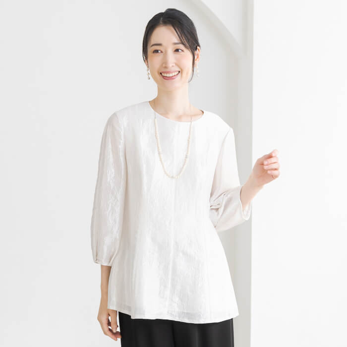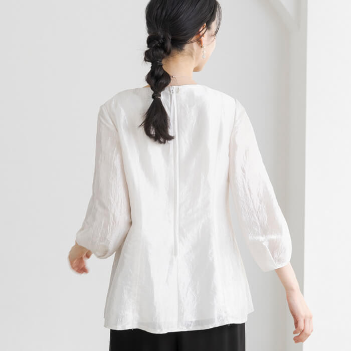 ■構築的なパフスリーブハリと軽さが特徴の生地による、ふんわりパフスリーブ。 構築的なシルエットが、大人かわいい印象です。