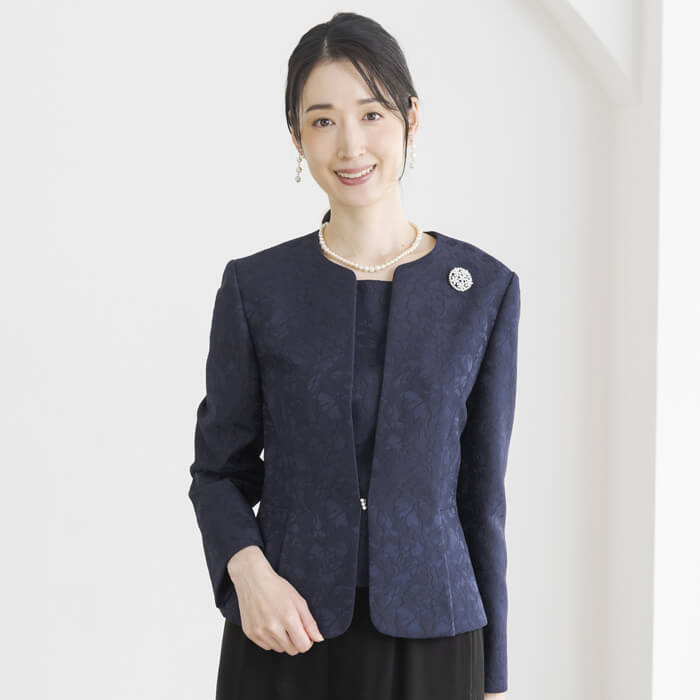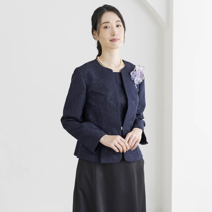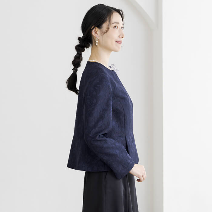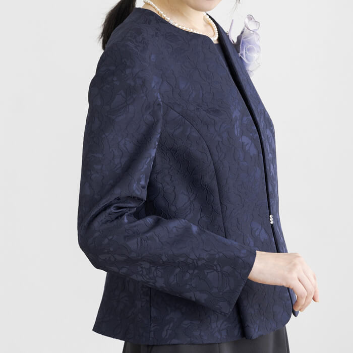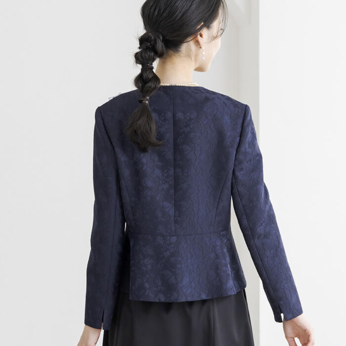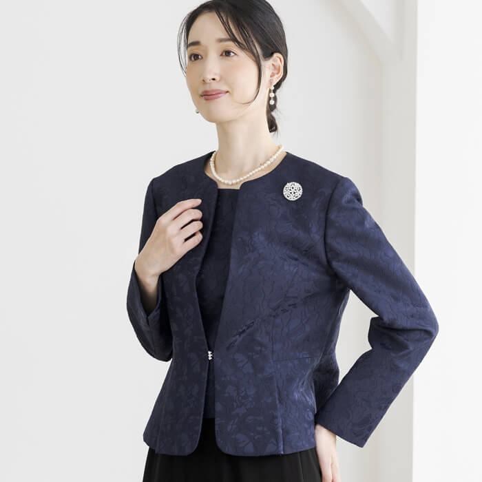 フラワーモチーフのジャカードで仕立てたフォーマルジャケット。