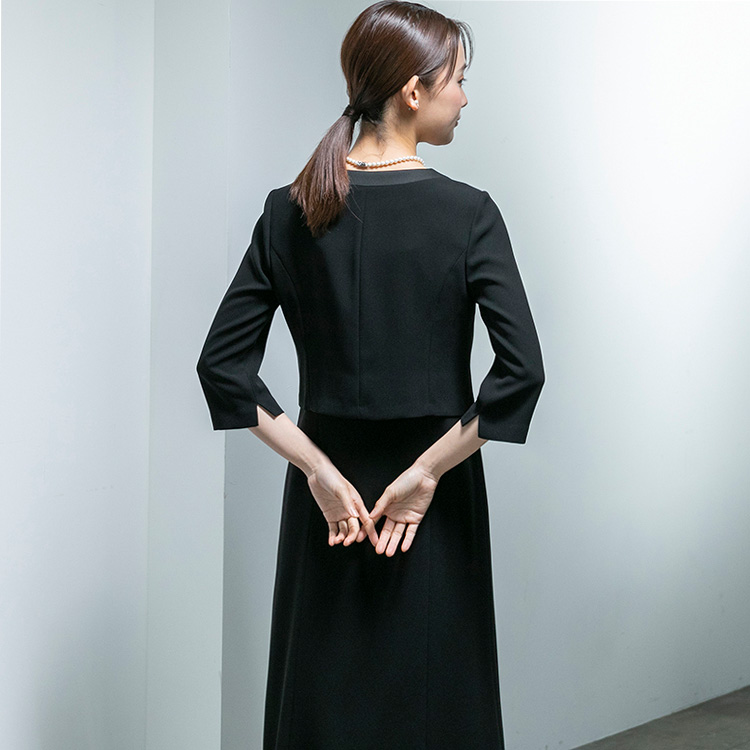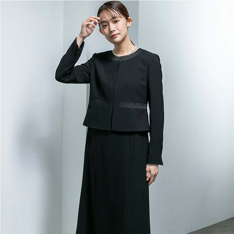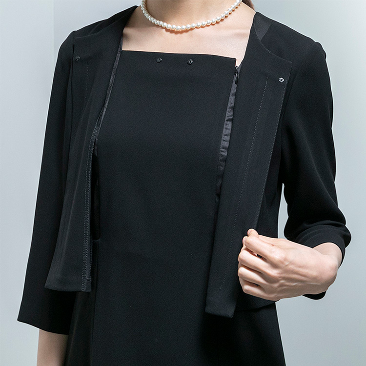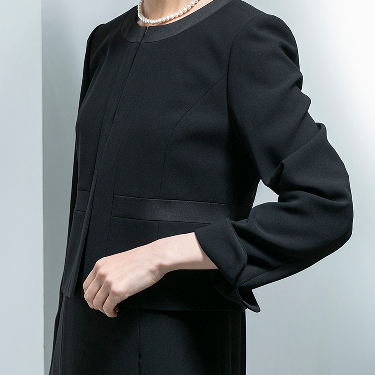 ブラックフォーマル定番の黒の発色性に優れた素材となっています。