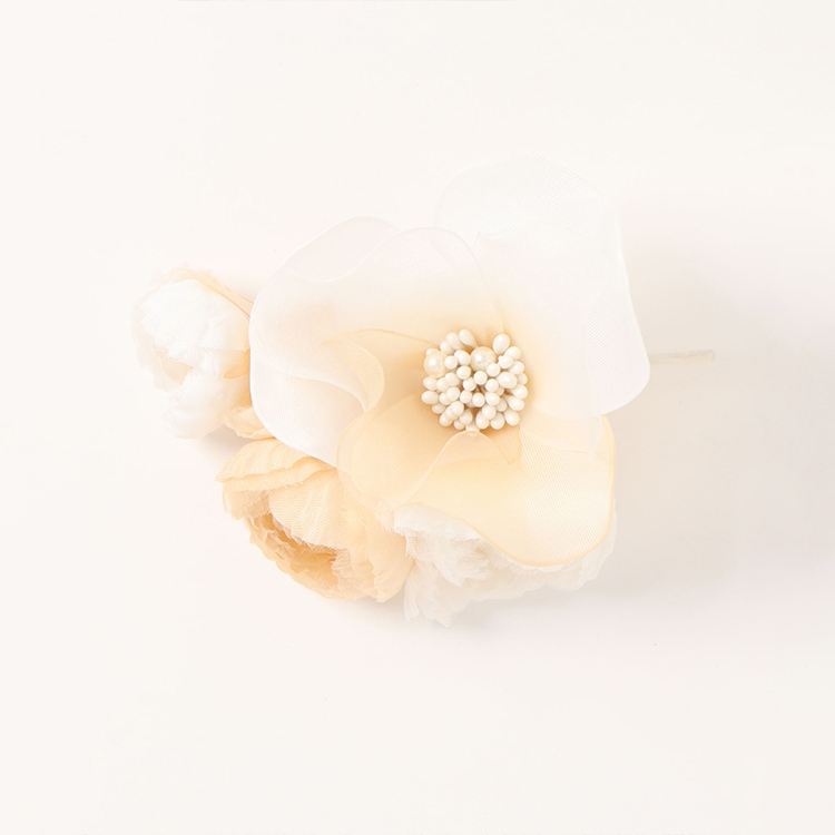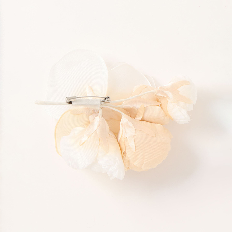 結婚式の披露宴や二次会、パーティーや謝恩会など、晴れの日の装いの完成度をグッと高めてくれます。<br> 軽いコサージュは、春夏の薄手のウェアに合わせても生地を傷めにくく、安心です。 一つ一つ丁寧に心をこめて手作りしていますので、大切な方へのプレゼントにもおすすめ。保管用ケースに入れてお届けします。