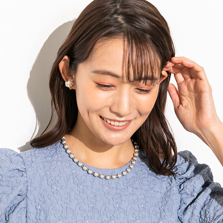ショートタイプでスッキリと付けられます。 結婚式やパーティーシーンなどのドレスアップスタイルにはもちろん、 卒入学式(セレモニーシーン)や七五三・お宮参りなど様々なシーンでお使いいただけます。 1つ持っていると重宝するネックレスです