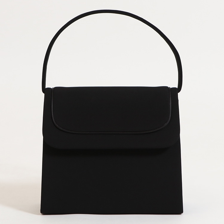 サテンパイピングスクエアデザイン ブラックフォーマルバッグ