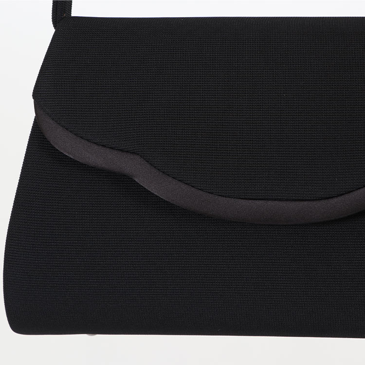 スカラップシェイプのフラップデザインや丸みのある本体が優しい印象のブラックバッグマグネットボタンでスムーズな開け閉めができます。底びょう付きで汚れやキズを防ぎます。持つ人や合わせるウェアを選ばないので、長くご愛用いただけます。
