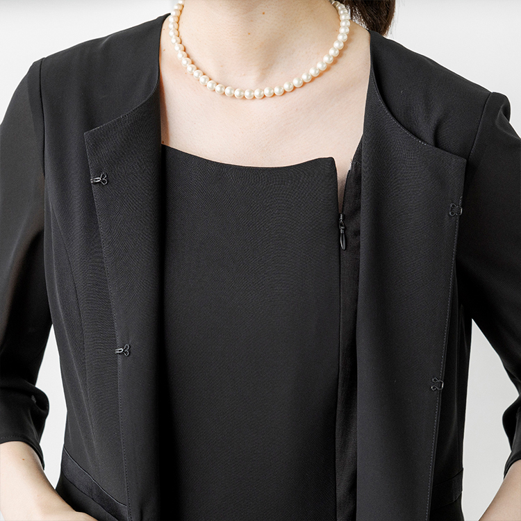 快適に着脱可能な前開きファスナー仕様の為、後ろに手を伸ばす手間がなく、髪が崩れる心配もありません。